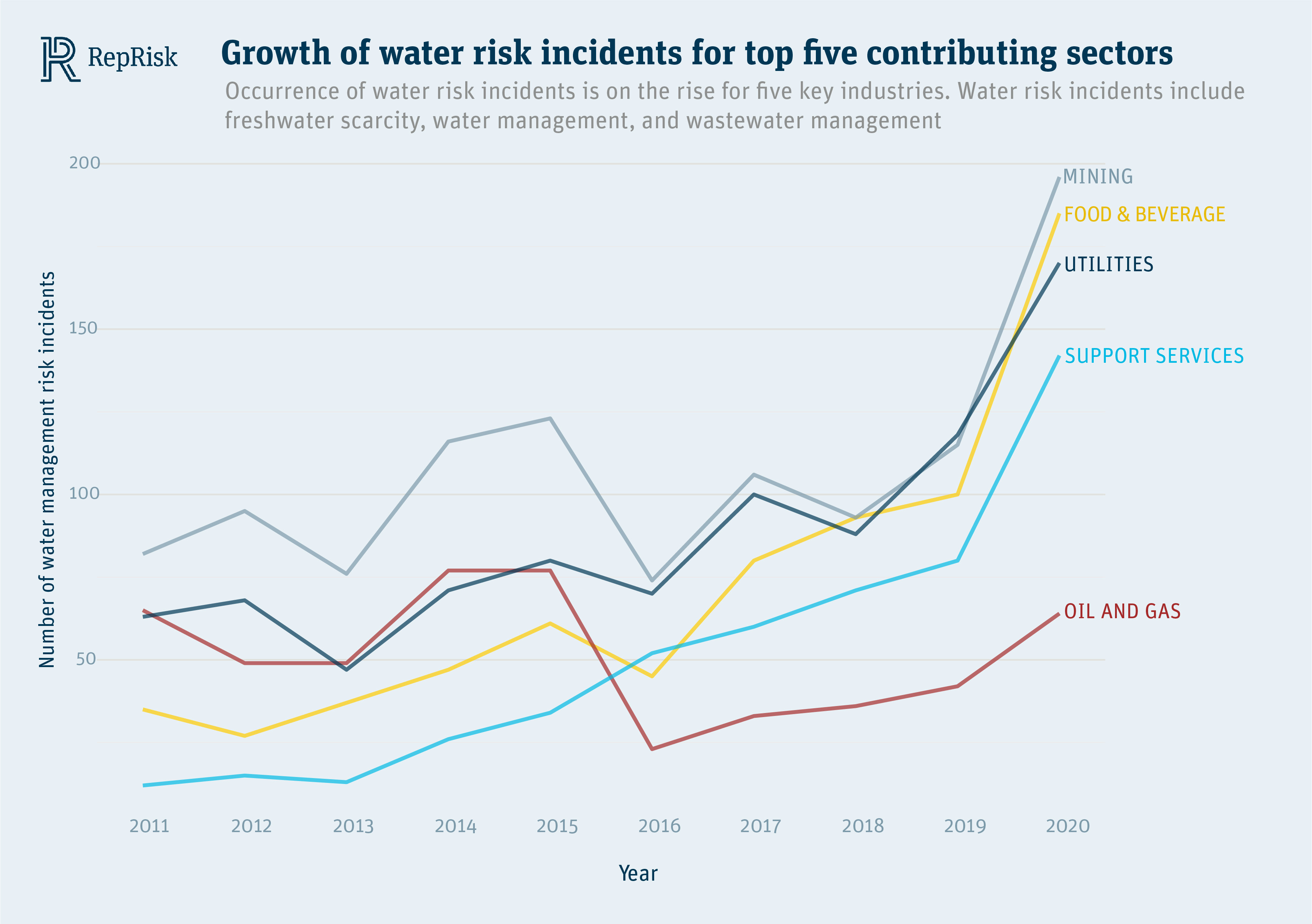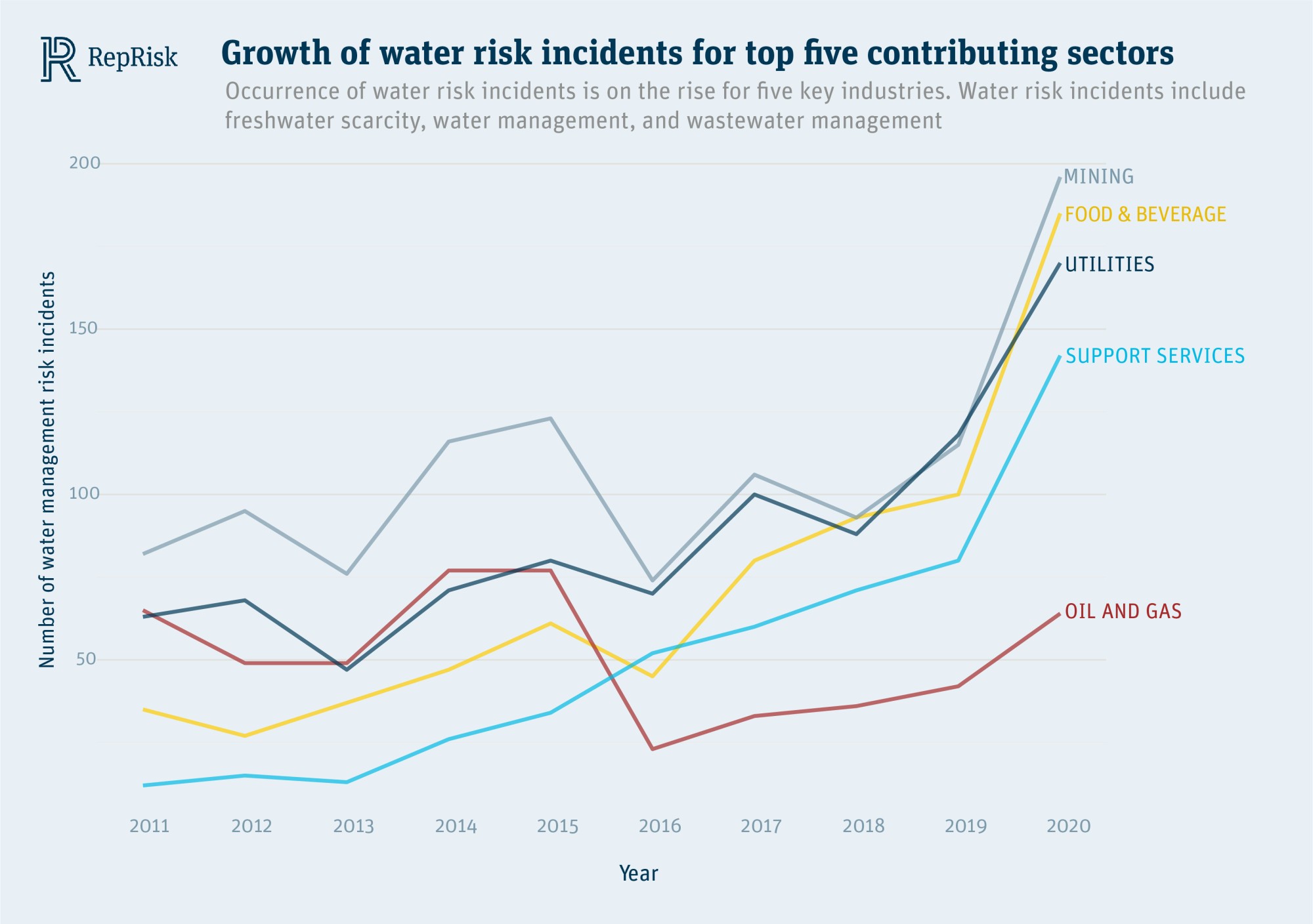 Fig1: Growth of water risk incidents for top five contributing sectors