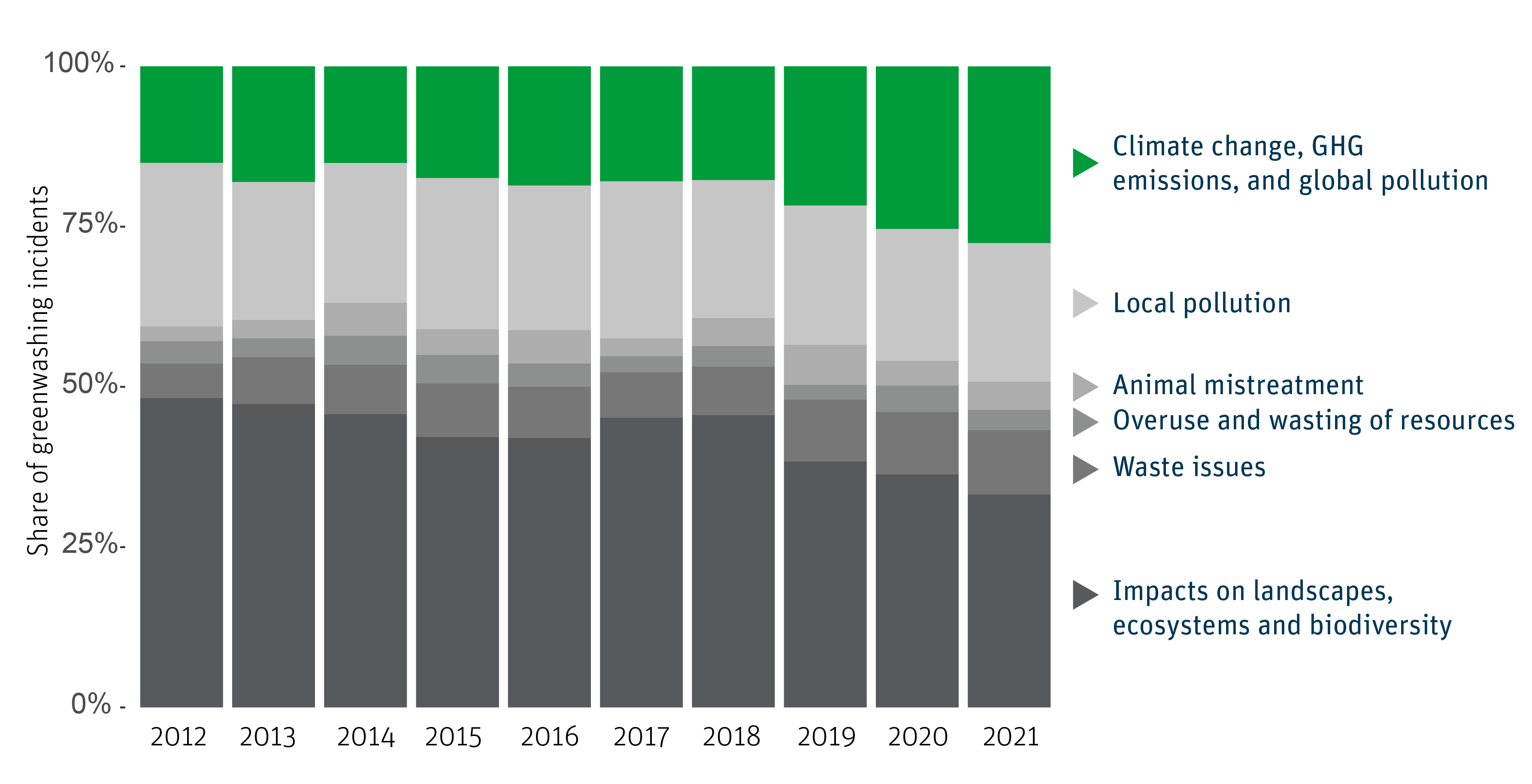 # VI. Shifting breakdown of sectors linked to climate greenwashing